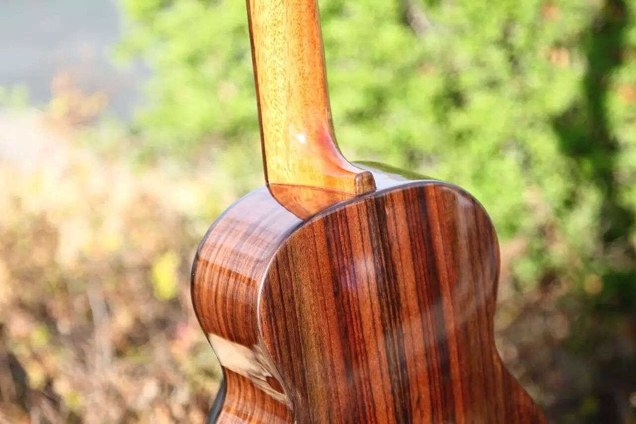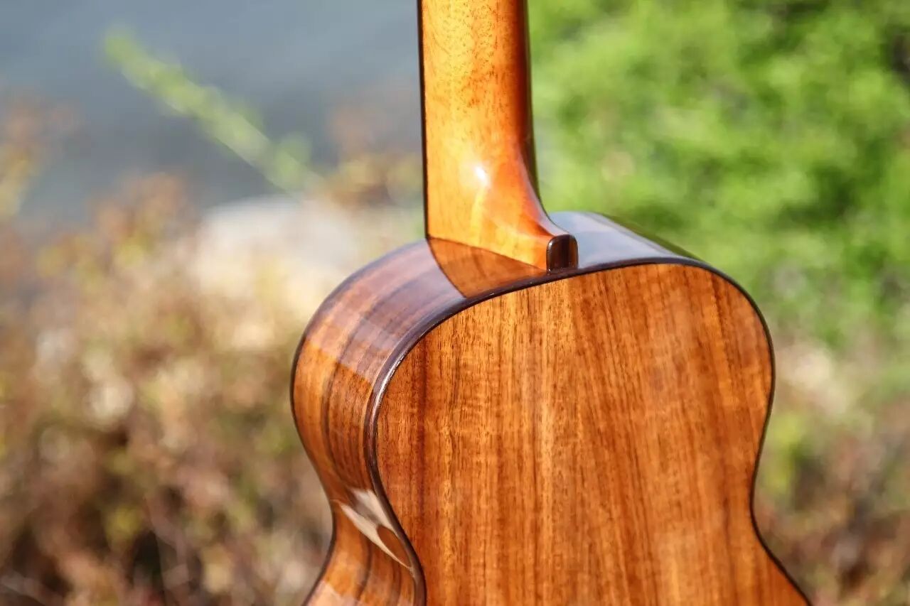 就是这款来自kawena(小天鹅)的23寸桃花芯全单琴(图片为26寸),售价为1120元。琴箱采用桃花芯材质,面板和背侧板均为实木。古典式琴头上镶嵌天鹅logo,宽指板给左手带来更大的活动空间,厚琴颈握起来更舒服,原厂搭配达达里奥琴弦,琴箱背板隆起造型可以使共鸣更加强烈,整琴手感、音准方面到位,无论是新同学还是准备换进阶琴的同学,这把琴都是非常好的一个选择,kawena还有相思木全单款和云杉玫瑰木全单款可供大家选择。
